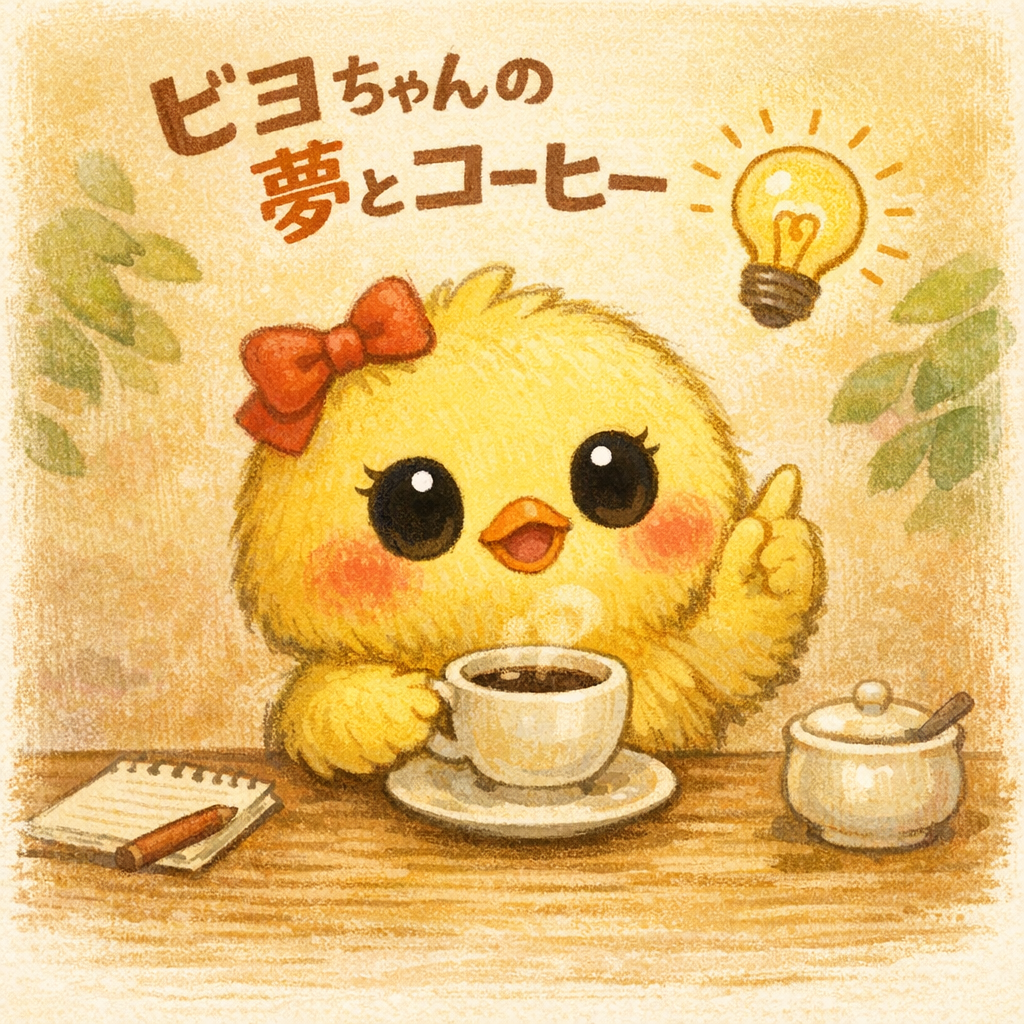 ある朝のこと。 ヒヨコくんたちは、ベルちゃんのカフェであたたかいお茶を飲んでいました。 窓の外からやわらかな光が差し込み、カップからはふんわり湯気がのぼっています。 けれど――ヒヨコくんの顔は、少しだけくもっていました。 […]