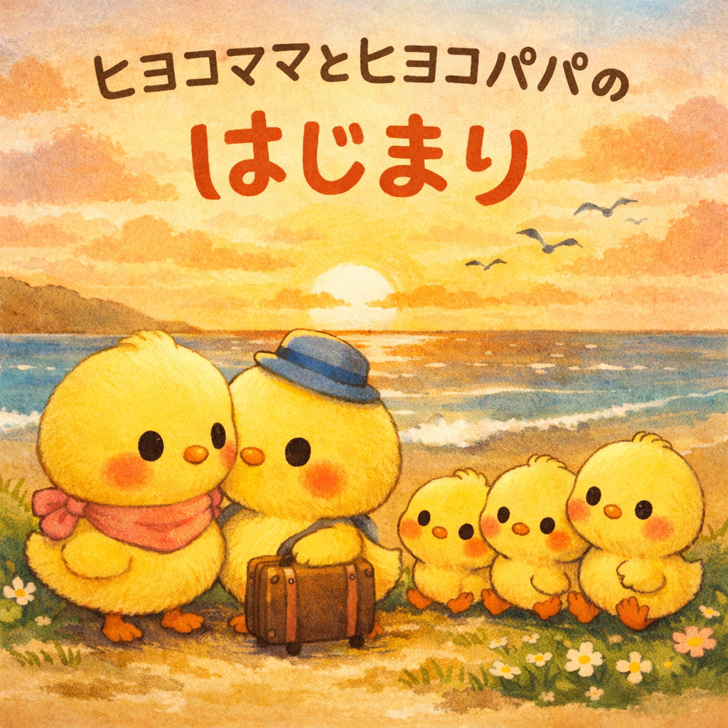 ある日の夕方。 ごはんを食べ終えて、ぽかぽかしたお腹をさすりながら、ヒヨコ三兄弟はリビングでころころ転がっていました。 「ねえねえ、ママ!」 ヒヨコくんが、ぱっと顔を上げます。 「ママとパパって、どうやって出会ったピヨ […]
