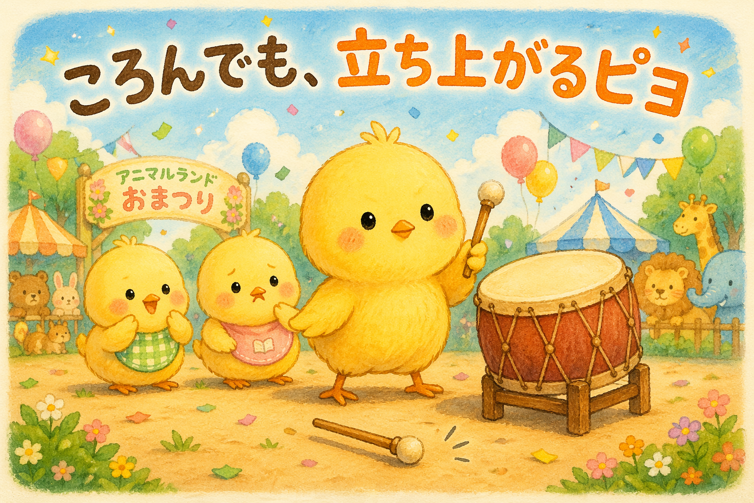 ある日の午後。 ヒヨコ三兄弟は、森の広場で仲良しのお友だちと遊んでいました。 ところがその中に、ときどき意地悪をしてくるカモメくんも混ざっていました。 「ヒヨコくん、その遊び方へたくそだよ!」 「ぴもんくん、そのおやつボ […]