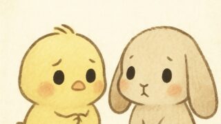 ひよこものがたり [ひよこものがたり]言葉の贈り物編第1話「ごめんねの勇気」 ある日の午後、ヒヨコ三兄弟は庭でおにごっこをしていました。「つかまえるピヨ〜!」と元気いっぱいヒヨコくんが全力で走り、「こっちだピヨ〜!」とおっとりぴもんくんが楽しそうに逃げます。しっかり者のひよたくんも一生けんめい走りながら、声を弾ませま... 2025.10.01 ひよこものがたり