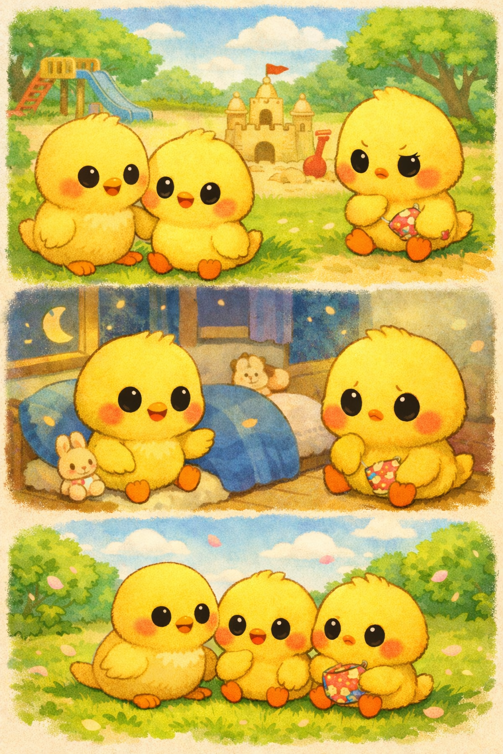 「ぴもんくん、ボクはぴもんくんのこと大好きピヨ。でもね、“いつも一緒”じゃないと不安になるのは、少し苦しくないピヨ?」