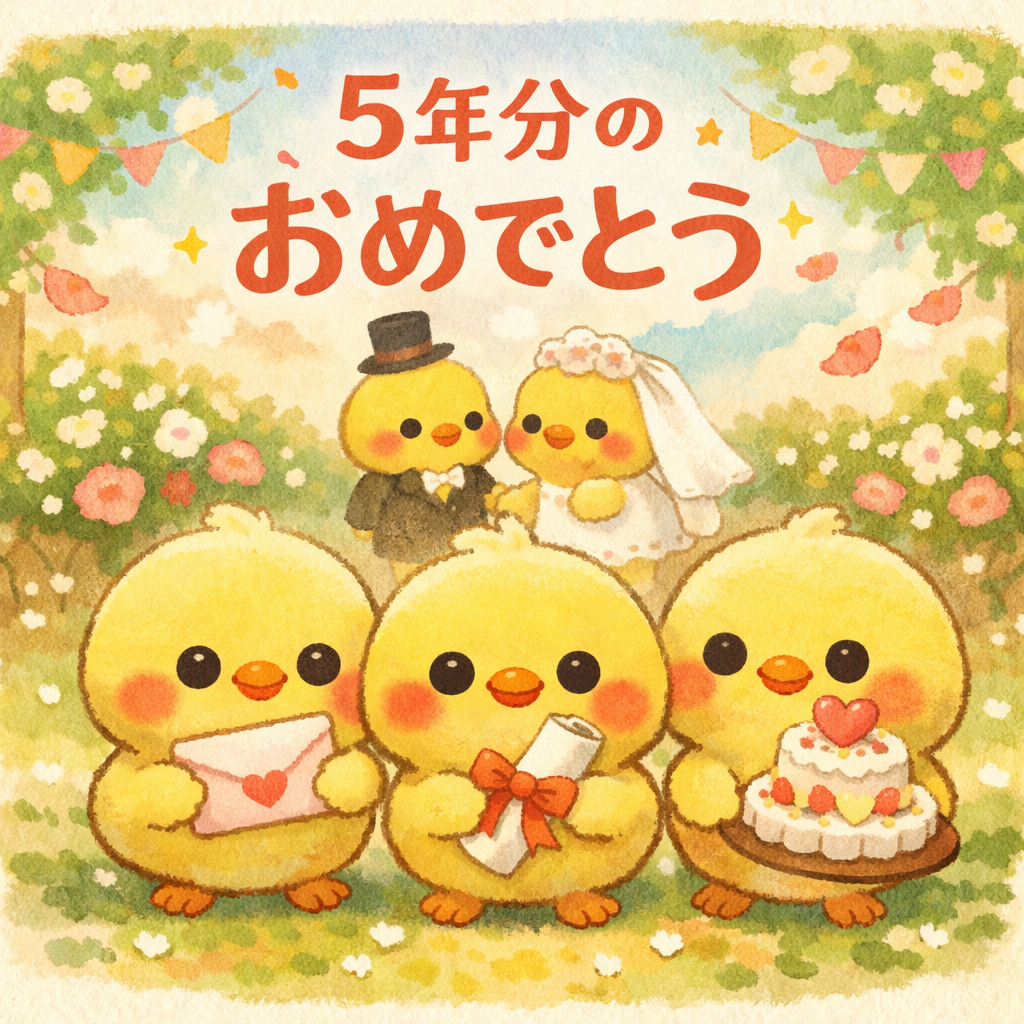 「5年分のおめでとう」があたたかく輝いているピヨ🌸