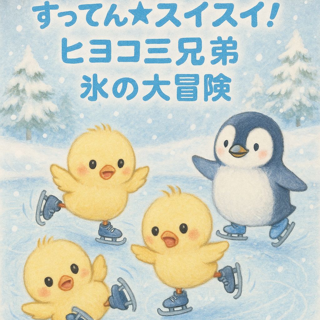 よいちゃんはスケートがとっても得意。今日はヒヨコ三兄弟に、スケートの楽しさを教えてあげることになりました。
