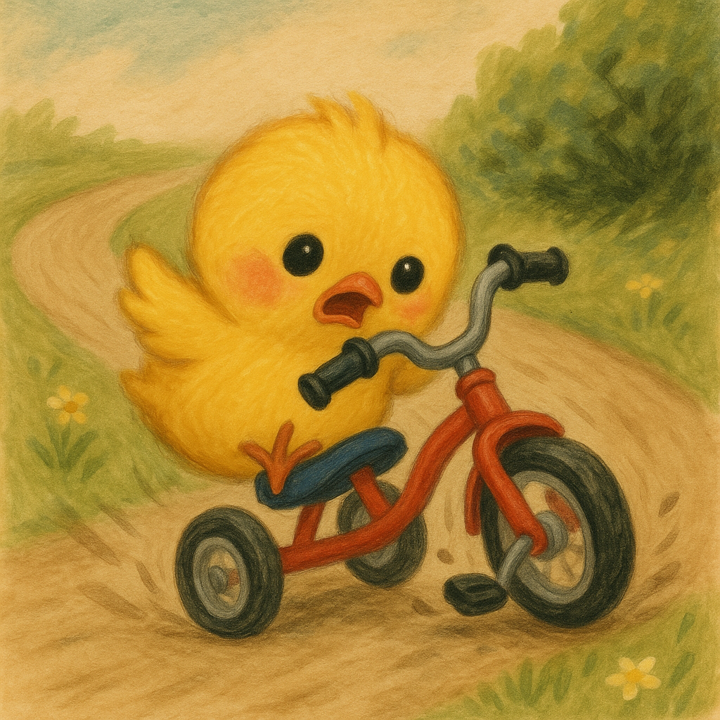 ヒヨコくん「うおおお〜〜〜!いけぇぇ!ゴールドターボ三輪車ー!!」