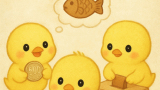 ある日、ヒヨコ三兄弟はおこづかいをもらいました。ヒヨコくんは500円玉を手にして「わーい! これはボクの宝物ピヨ!」と目をきらきらさせました。ぴもんくんはフィッシュアーモンドを思い浮かべて「これで山ほど食べられるピヨ…!」とよだれを垂らし、...